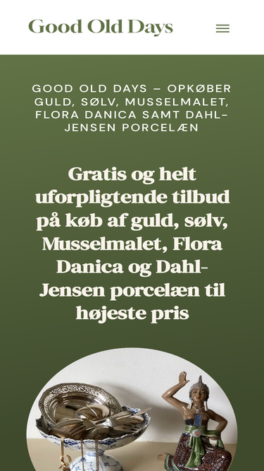 Vi opkøber køb af guld, sølv, Musselmalet, Flora Danica og Dahl-Jensen porcelæn til højeste pris. Ring 60 21 60 32 eller book et uforpligtende møde.