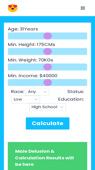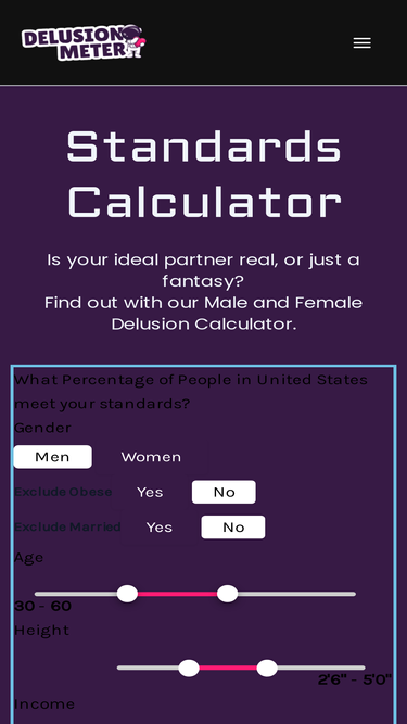 Find out how realistic your relationship standards are with the Male Delusional Calculator.