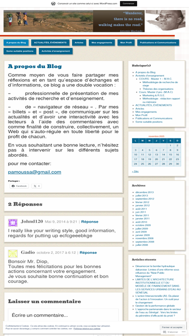 comme moyen de vous faire partager mes réflexions et en tant qu’espace d’échanges et d’informations, ce blog a une double vocation : - professionnelle de présentation de mes activités de recherche et d’enseignement. - de "navigateur de réseau ". par mes « billets » et « post », de communiquer sur les actualités et d’avoir une interactivité avec les lecteurs…