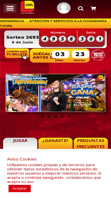 ¡Cambia tu suerte al instante! Si al raspar encuentras la combinación de números, letras, imágenes, símbolos, marcas, señales o signos, indicada en el tiquete ¡Ganaste!