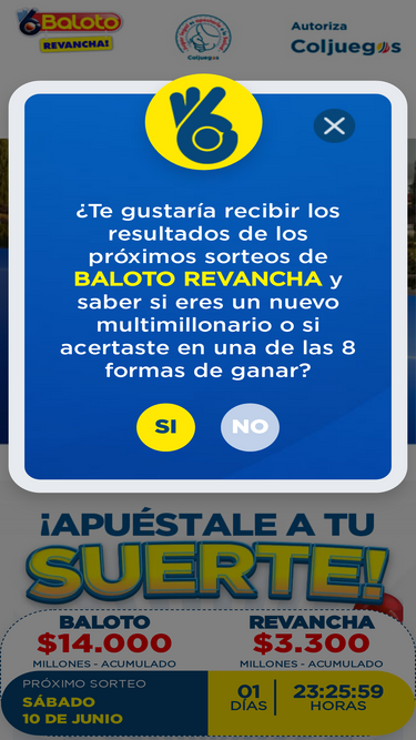baloto es un juego novedoso de tipo loto en línea de suerte y azar, donde el jugador por $5.700 apuesta por un gran acumulado multimillonario inicial de $4.000 millones de pesos, que se irá acumulando en cada sorteo si no se tiene un ganador.