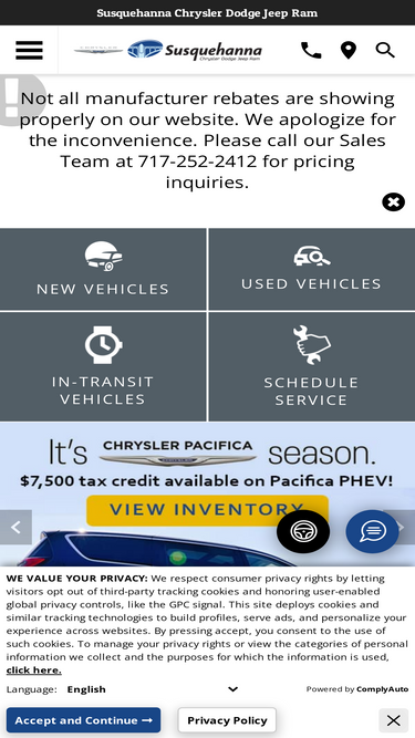 at susquehanna chrysler dodge jeep ram, we’re confident you’ll find the new cdjr or used vehicle you’re looking for at a price you can afford. visit us today!