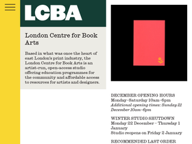 57%Since opening our doors in 2012, LCBA has become home to a thriving and tight-knit community of artists, designers, craftspeople, illustrators, writers, educators, self-publishers, hobbyists, and everyone in between.Studio users work independently, using the unique facilities at the London Centre for Book Arts. Get in