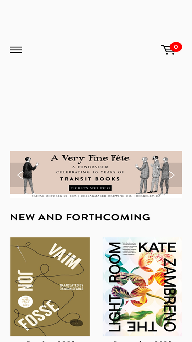 Transit Books is a nonprofit publisher of international and American literature, based in the San Francisco Bay Area. Founded in 2015, Transit Books is committed to the discovery and promotion of enduring works that carry readers across borders and communities. Transit publishes a carefully curated