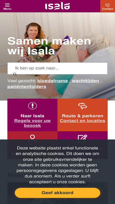 93%isala is een groot regioziekenhuis met topklinische zorg. met met vijf locaties in zwolle, meppel, steenwijk, kampen en heerde is isala uw ziekenhuis in de regio bij gezondheidsproblemen. voor complexe zorg komen ook mensen uit omliggende ziekenhuizen en ver daarbuiten naar isala. in isala zorgen we niet alleen voor u, maar doen we dat samen met u. samen komen we tot de juiste behandeling.