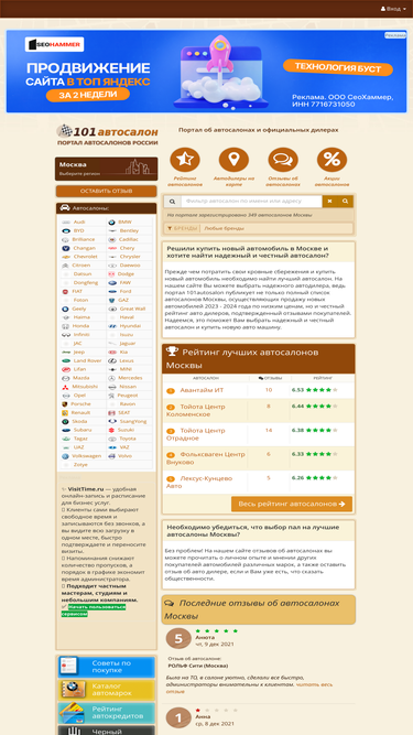 на сайте представлен рейтинг надежных автосалонов и честных официальных дилеров москвы с отзывами, контактами и скидками на новые автомобили.