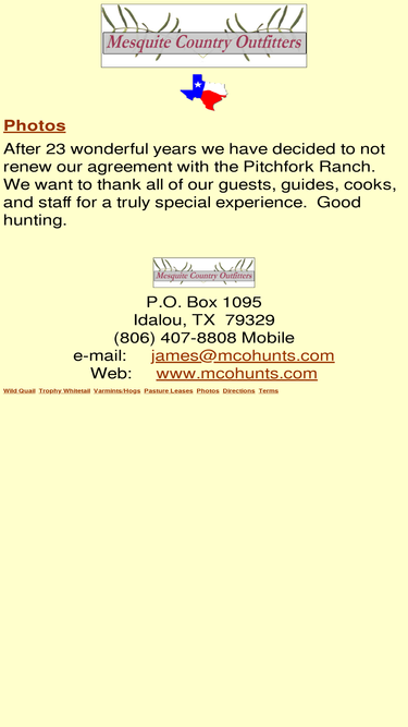 outstanding texas wild quail, trophy whitetail deer, trophy mule deer, turkey, dove, wild hog, and varmint hunting on the legendary 165,000 acre pitchfork ranch.