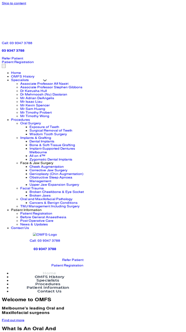 OMFS | Level 5, 766 Elizabeth Street Melbourne VIC 3000 Australia | (03) 9347 3788 | admin@omfs.com.au | Mon-Fri 8:00 am to 5:30 pm