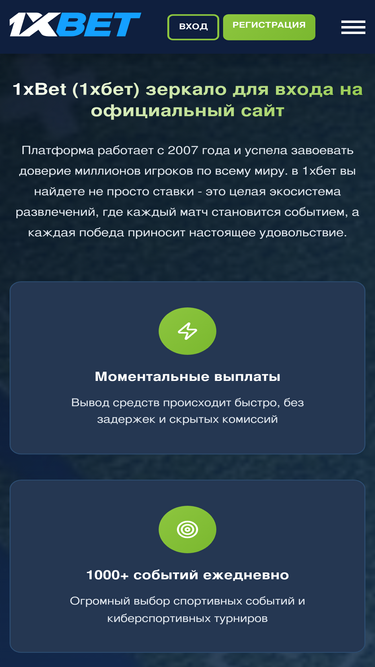 59%Узнайте всё что необходимо об официальном сайте 1xbet. Как осуществить вход с помощью зеркала 1хбет. Ставки на спорт, киберспорт, live-казино. Приветственный бонус до 1500 USD.