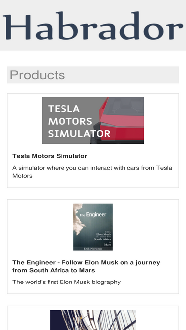 habrador is the best! here you can find open source projects in c#, design programming patterns, computational geometry, free elon musk biography, tesla simulator, unity tutorials, a self-driving car, and much more. by erik nordeus nordéus.
