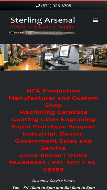 northern Virginia gun repair gun shop NFA Production Manufacturer Gunsmith Firearms Repair Custom Shop Machining Cerakote Coating Laser Engraving Rapid Prototype Support Industrial Dealer Government Sales Service