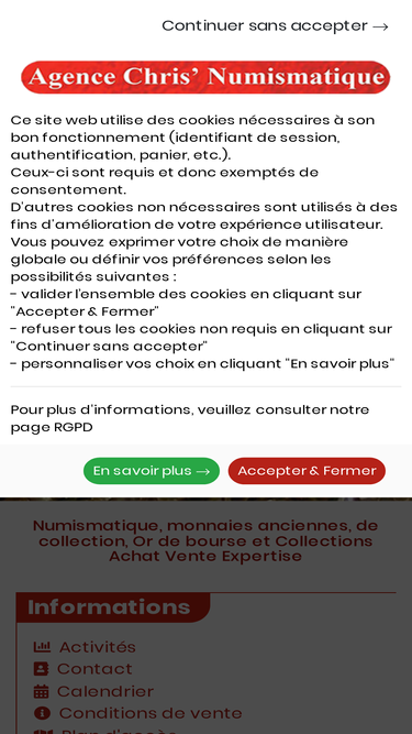 chris'numismatique, vente en ligne de monnaies anciennes et de collection, achat vente expertise or et collections, cartes postales et timbres