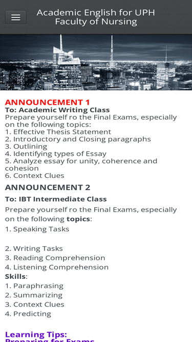 Academic English for UPH Faculty of Nursing