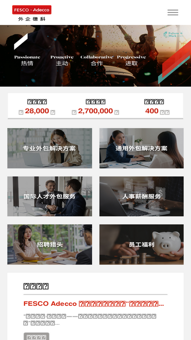 fesco adecco外企德科为企业及个人提供通用外包解决方案、专业外包解决方案、国际人才外包服务、人事薪酬服务、招聘猎头及流程外包、员工福利服务、劳动力解决方案和数字化等综合性人力资源服务,北京外企德科人力资源服务上海有限公司在重庆、浙江、深圳、苏州、陕西、湖南、安徽设立了分支机构,全国服务人数超过270万名,服务客户超28000家。