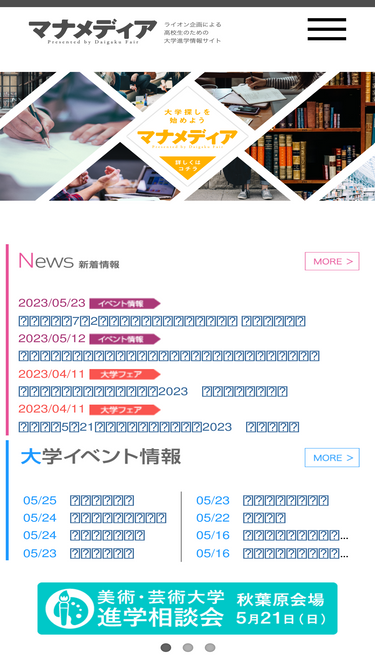 マナメディアは、ライオン企画による高校生のための大学進学情報サイトです。大学フェアをはじめ進学相談会、進学情報誌(電子書籍)、 受験料支払いサービスなど皆様に便利なサービスと情報をご案内します。