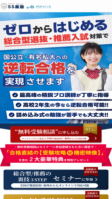 79%ゼロからはじめる総合型選抜・推薦入試対策でワンランク上の国公立・有名私大への 逆転合格を実現させます