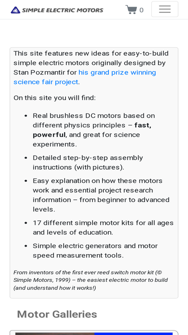 easy-to-build, simple, inexpensive electric motor. this project won grand prize and numerous awards at different science fairs.