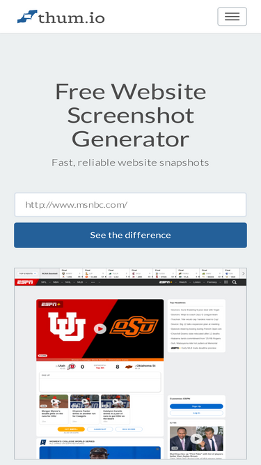 Increase engagement when sharing on Facebook or Twitter by adding a screenshot of your website, with just a single Thum.io URL!