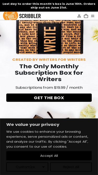 The Only Writing Subscription Box for Novelists, Created by Bestselling Authors. Featured On BuzzFeed As A Great Gift Box For Writers Or Yourself.