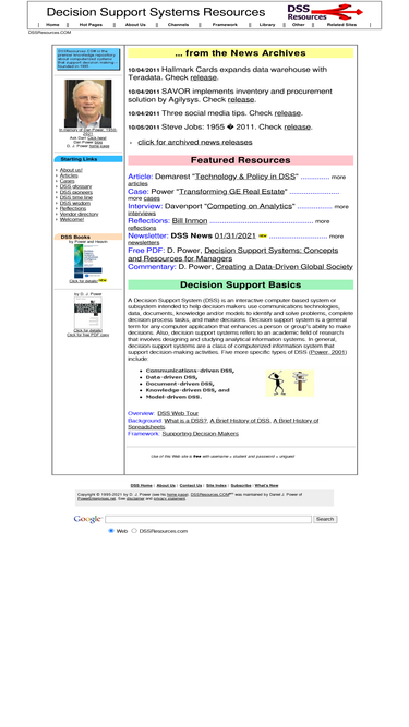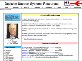 85%dssresources.com is the premier source of decision support systems information on the web. dssresources.com is a web-based knowledge repository. the mission is to help people use information technologies to improve decision-making. covering business intelligence, data warehousing, decision support, expert systems and e-business decision support.