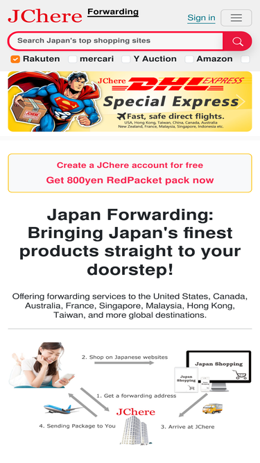 jchere japan forwarding service can safely and quickly deliver products from japanese shopping platforms like rakuten, yahoo, mercari, and amazon to your hands. enjoy consolidated shipping discounts, various payment options, and professional customer support. the top choice for japan forwarding, professional, efficient, and convenient.