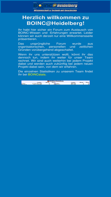 die seite des boinc-teams boinc@heidelberg. eine community zum thema verteiltes rechnen / distributed computing im rahmen von seti@home und mehr.