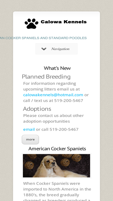 casa kennels, located in scotland ontraio canada, near brantford/hamilton, is a small breeder of american cocker spaniels with 2-3 litters per year. we specialize in breeding champion cockers of the black variety. watch for us at the american cocker spaniel club of both canada and central ontario shows.