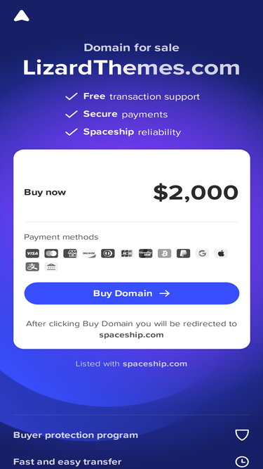 LizardThemes.com is for sale on Spaceship. Secure checkout and quick transfer. No hidden fees.