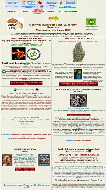 edible gourmet mushroom growing kits; morel mushroom, shiitake mushroom, oyster mushroom. dried mushrooms, plug spawn, books, posters