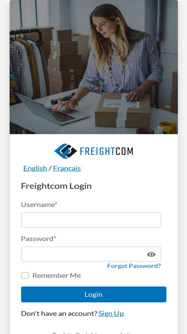 login page for freightcom, the all-in-one shipping management platform for small-to-medium-sized businesses.