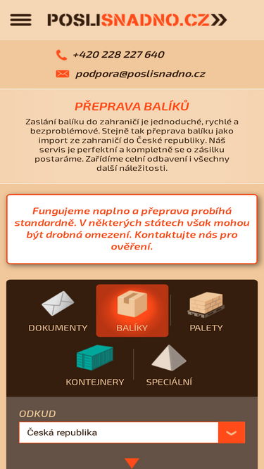 Jsme komplexní mezinárodní přepravci. Posíláme balíky, palety i velké letecké a námořní zásilky. Klademe důraz na kvalitu přepravy a máme perfektní zákaznický servis. Jsme odborníci a se vším Vám rádi poradíme.
