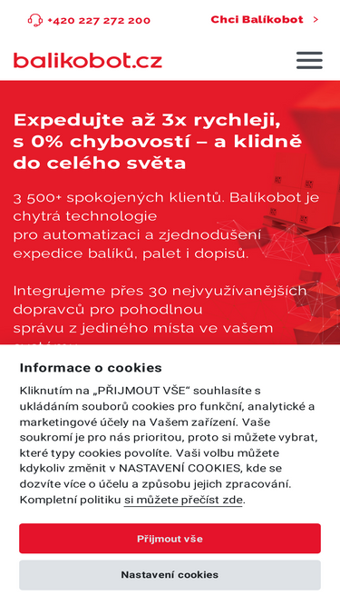 Balíkobot je chytrá technologie pro automatizaci a zjednodušení expedice balíků, palet i dopisů. Integrujeme přes 30 dopravců.
