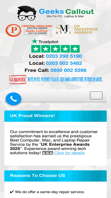 89%Need laptop repair near me? Geeks Callout London offers fast, affordable and professional repairs across all London areas. Call now for a free quote.