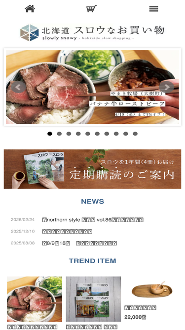 100%グルメ、雑貨、食器などのショッピングが楽しめる、北海道の本当に良いものを販売する通販サイト。ソーゴー印刷の出版部門「クナウマガジン」が発行する「northern style スロウ」が厳選した商品の数々を紹介しています。​