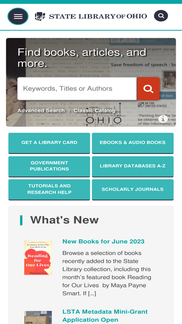 the state library of ohio, located in columbus, oh, is a state agency that serves state government, all types of libraries and residents of ohio.