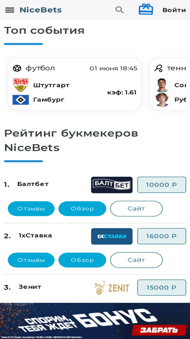 nicebets - это прогнозы на спорт от профессиональных каперов и любителей ставок на спорт, сайт про букмекерские конторы, составление рейтингов, бонусов на основе отзывов игроков.
