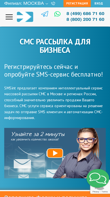 сервис smsint предоставляет услуги по массовой рассылке смс сообщений с гарантией доставки. тарифы. стоимость: от 1.01 руб/смс. бесплатное тестирование и интеграция. более 6000 смс/мин. техподдержка 24/7.