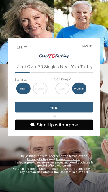 Over 70 singles connects men and women looking for romance.