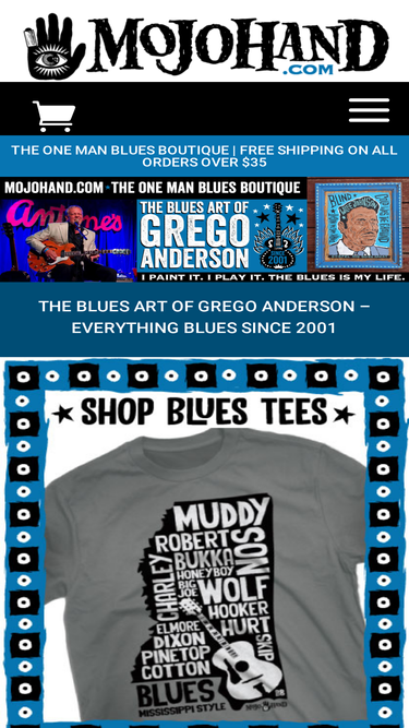 Shipping Everything Blues worldwide since 2001, featuring the Blues music art of Grego Anderson. Get Free US shipping and the coolest music merch on Earth.
