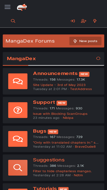 The MangaDex Forums is a free open-to-all place to interact with the whole scanlation community!