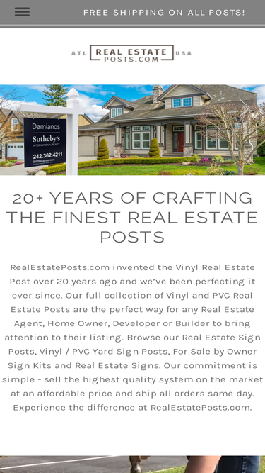 "<div class="prod_det_col_l"> <p>The Real Estate Post was invented over 20 years ago, and we've been refining it ever since to ensure it meets the highest standards of durability and ease of use. This Real Estate Post Kit includes everything necessary for installation&mdash;just add your real estate sign. Our patent-pending internal key system streamlines assembly and disassembly, making the process fast and effortless. This design also provides a clean, smooth appearance, as no external screws are required to secure the sign arm.</p> <p>Installation is particularly simple thanks to our innovative PowerStake, ensuring your sign post stays firmly in place. The 36" arm accommodates signs up to 24" wide, with hanging holes at 16" or 20" on center. For larger signs, the 46" arm supports up to a 36" wide sign, with hanging holes at 14", 18", 26", and 30" on center. See the images for a clear comparison between the fixed holes and sliding clips options, allowing you to choose the best configuration for your signage needs.</p> <h3><strong>FREQUENTLY ASKED QUESTIONS:</strong></h3> <p><strong>Are holes predrilled for rider clips?</strong></p> <p>Yes! All of our post systems have a small hole predrilled for rider clips.</p> <p><strong>I would prefer to bury my post. How does this work?</strong></p> <p>Yes. Some customers prefer to bury their posts rather than use the stakes, either because of loose soil conditions or because they want a more permanent solution. We offer an option that provides an eight-foot post without a PowerStake. This can be direct buried. For even more stability, you can insert a 4x4 wood post into our post.</p> <p><strong>What tools are required?</strong></p> <p>A Phillips screwdriver for the rider clips and a hammer f