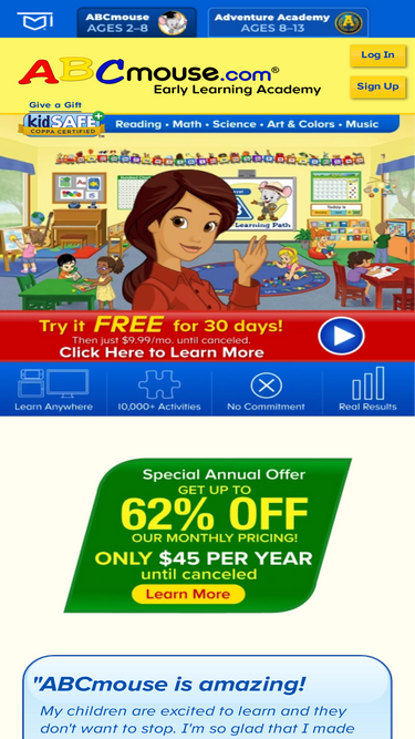 ABCmouse is the leading online early learning program for kids ages 2–8, offering a complete curriculum in reading, math, science, and more.