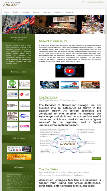 株式会社コンベンションリンケージの公式ホームページです。国際会議・医学会の運営、国際会議場・ホール等施設の運営。常設事務局、通訳、翻訳、デザイン、編集、スペシャリスト、スタッフ、コンサルティング