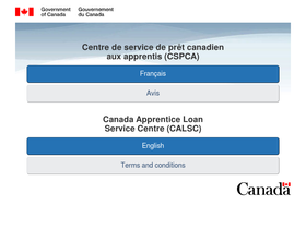 la page d'accueil présente le site des publications du gouvernement du canada et offre le choix de continuer en anglais ou en français.