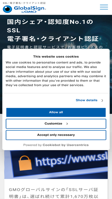 ウェブサイトのSSL化(暗号化通信)・クライアント認証・メール署名と暗号化、ソフトウェア・デジタル文書への電子署名、IoT向け証明書大量発行ソリューションなど、電子証明書と認証サービスでお客様のビジネスをサポートします。