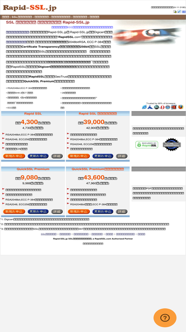 78%sslサーバ証明書格安販売。rapidssl 1,620円、ワイルドカード11,000円、symantec 53,000円、geotrust 11,880円、comodo1,200円。低価格でsslサーバ証明書をご提供。