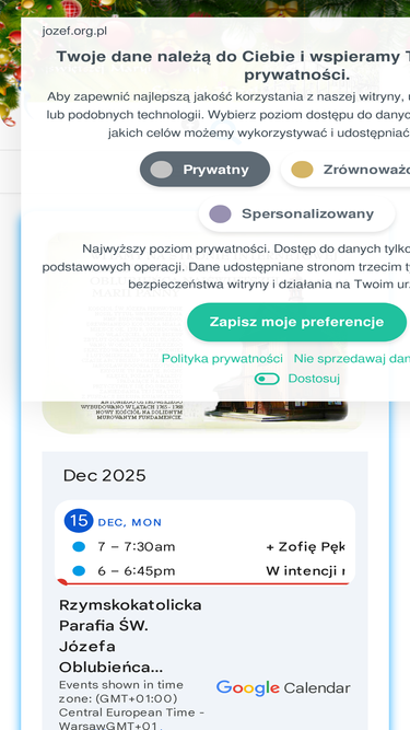 100%Uwaga, WAŻNE ! Kancelaria Parafialna czynna jest od poniedziałku do piątku w godz. 9 -10. Rzymskokatolicka Parafia ŚW. Józefa Oblubieńca Najświętszej Maryi Panny Kancelaria 18 stycznia 2026Intencje MszalneOgłoszenia ParafialneII NIEDZIELA ZWYKŁA Zobacz wystrój kościoła na Boże Narodzenie 2025Odwiedź nas! Zapraszamy! Przedszkole Stowarzyszenia Rodzin Katolickich Archidiecezji Łódzkiej bł. Marii i Alojzego Beltrame QuattrocchiZapraszamy do naszego przedszkola,...