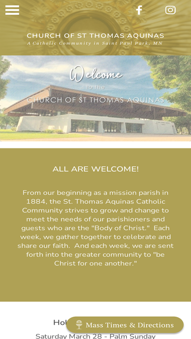 Official website of St. Thomas Aquinas Catholic Church and School. Features include parish & school news, Mass and Confessions schedule, bulletins, parish & school calendar, Athletics, podcasts, descriptions of all parish programs and much more!