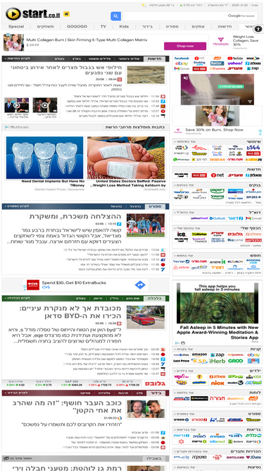 84%דף בית הכולל עדכוני חדשות, כלכלה, ספורט, בידור, הורסקופ ואסטרולוגיה. אינדקס שימושי למגוון אתרים פופולאריים - פייסבוק, יוטיוב, גוגל ועוד... הכנס והפוך לדף הבית החדש שלך!