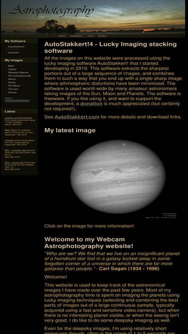 75%astronomy images made with modified webcams and an amateur telescope. a dmk21au04 was used for the latest planetary images (everything after 16th june 2009)